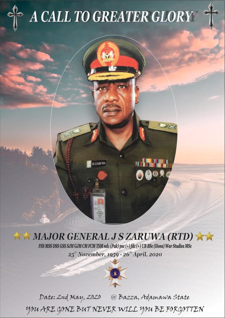Blessed with high command and education, he preferred to reach out to every person he came in contact, with a sense of humility and selfless service. In addition to various military certifications and education, General Zaruwa also held a Certicate in Education from the Nigerian Defence Academy, Bachelor of Science Degree in War Studies and Masters’ Degree in Strategic Studies. He is survived by his wife and two children. May God grant him eternal rest. Amen