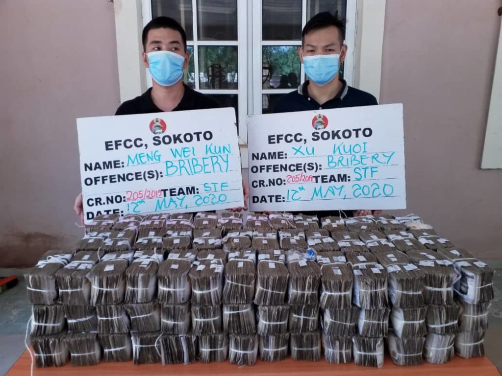 The Sokoto Zonal Office of the Economic and Financial Crimes Commission has arrested two Chinese nationals, Meng Kun and Xu Koi, for allegedly offering N100 million as bribe to its zonal head, Abdullahi Lawal.